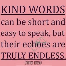 My 12-year-old nephew was visiting after school. I reached out to touch his hair saying you have the best hair, and the longest eye lashes. I went further to say, “In fact, did you know you are one of the kindest young men that I know?” He looked right into my eyes and genuinely wanted to know if I really believed what I was saying? He then went on to say that he thought I was the only person in his life that felt that way because I was the only one that said it. I was surprised that he did not simply know it because he is fortunate enough to be surrounded by a loving family. Again, this simple kind gesture of speaking what I thought had deep meaning for him.